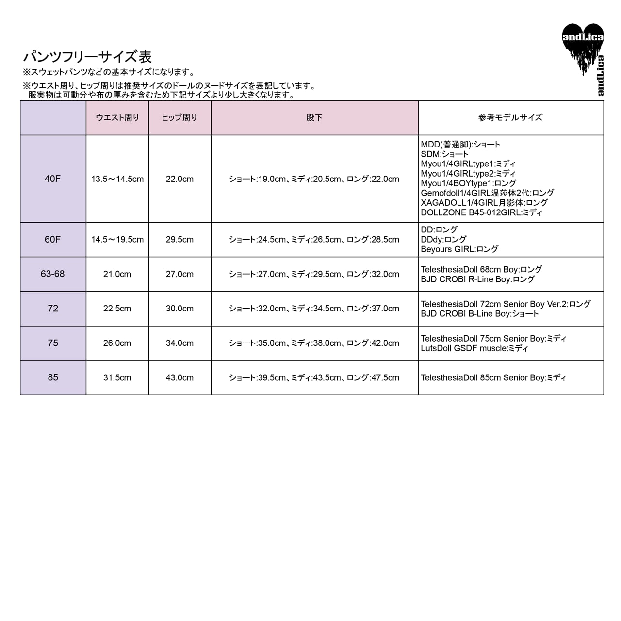 参考モデルサイズ